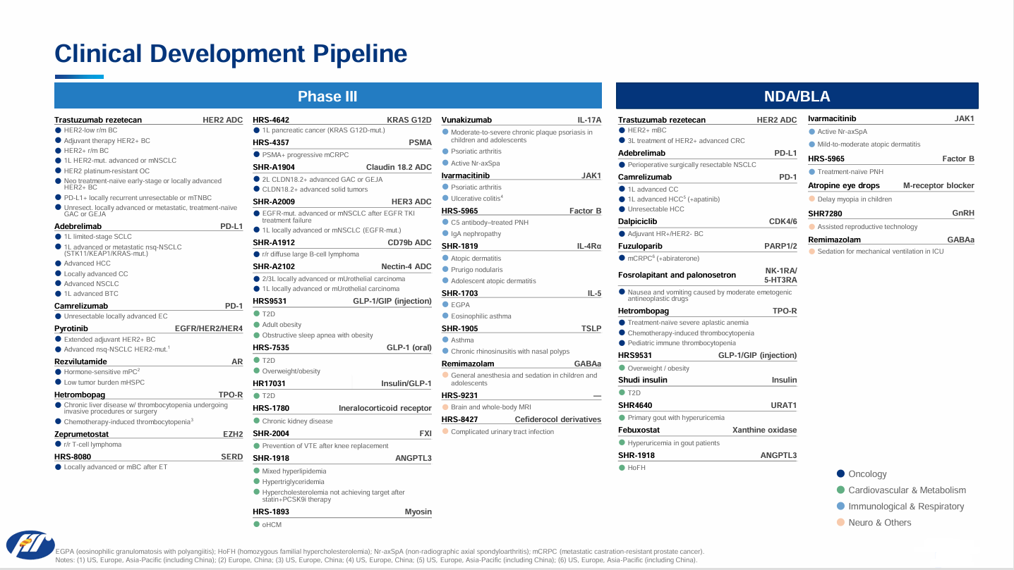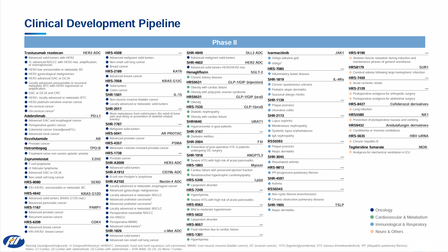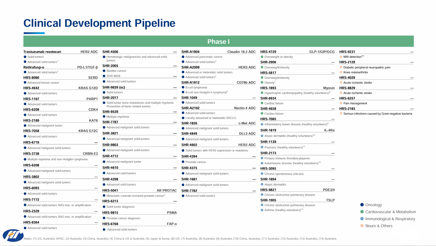 We established a diversified and comprehensive R&D pipeline covering oncology, autoimmune diseases, pain management, cardiovascular diseases, metabolic diseases, infectious diseases, respiratory system diseases, hematological diseases, neurological diseases, ophthalmology, etc.