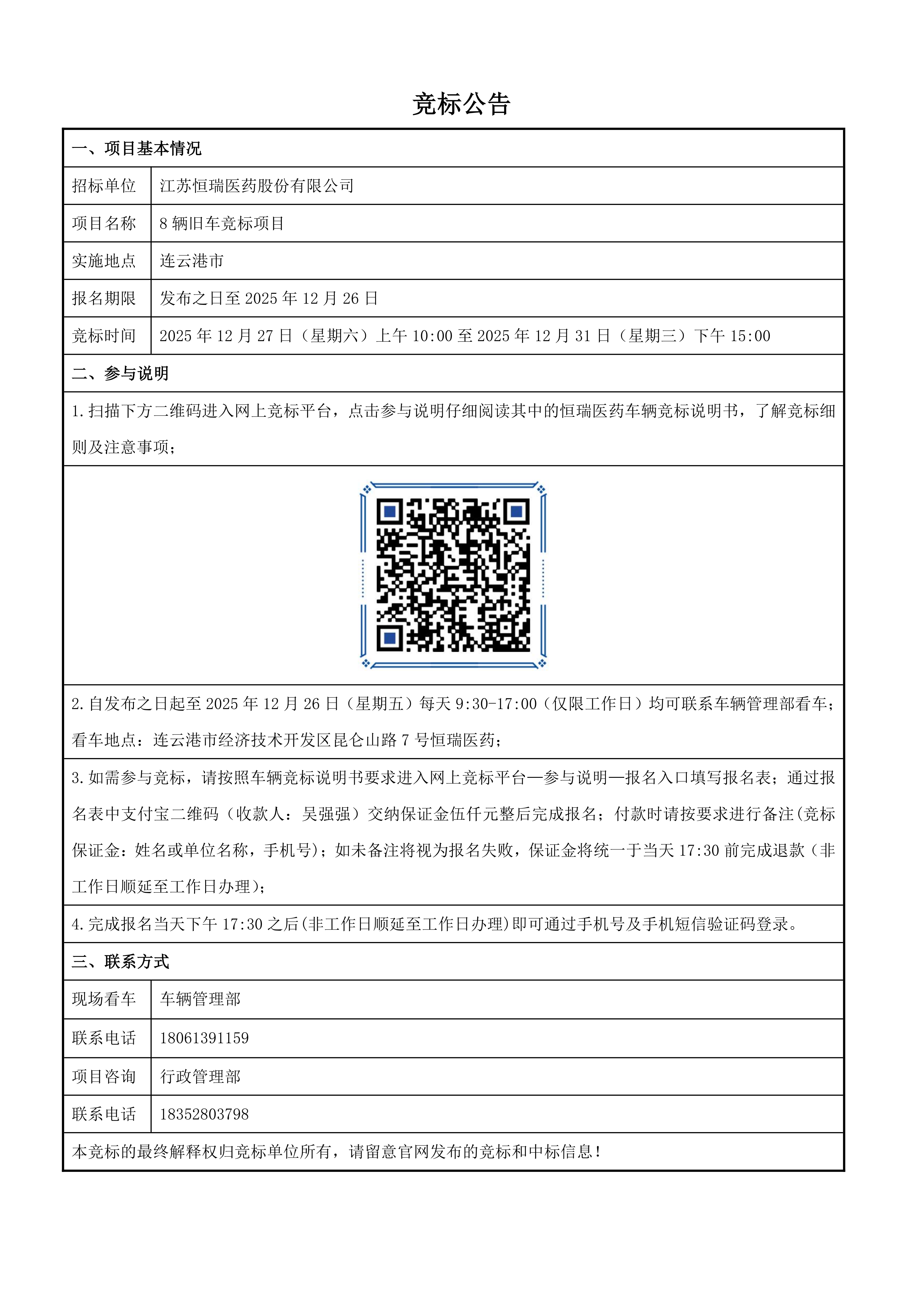 竞标公告-8辆旧车竞标项目