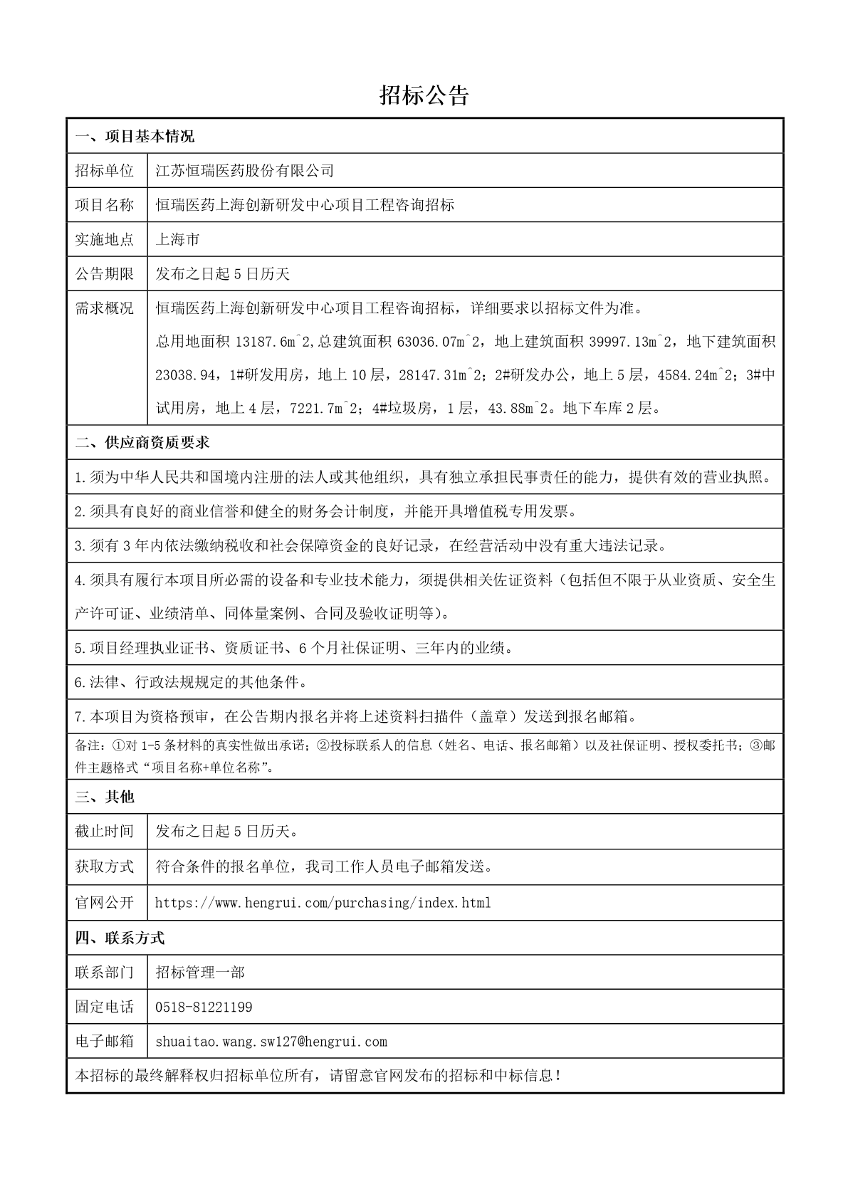 上海创新研发中心项目工程咨询招标公告